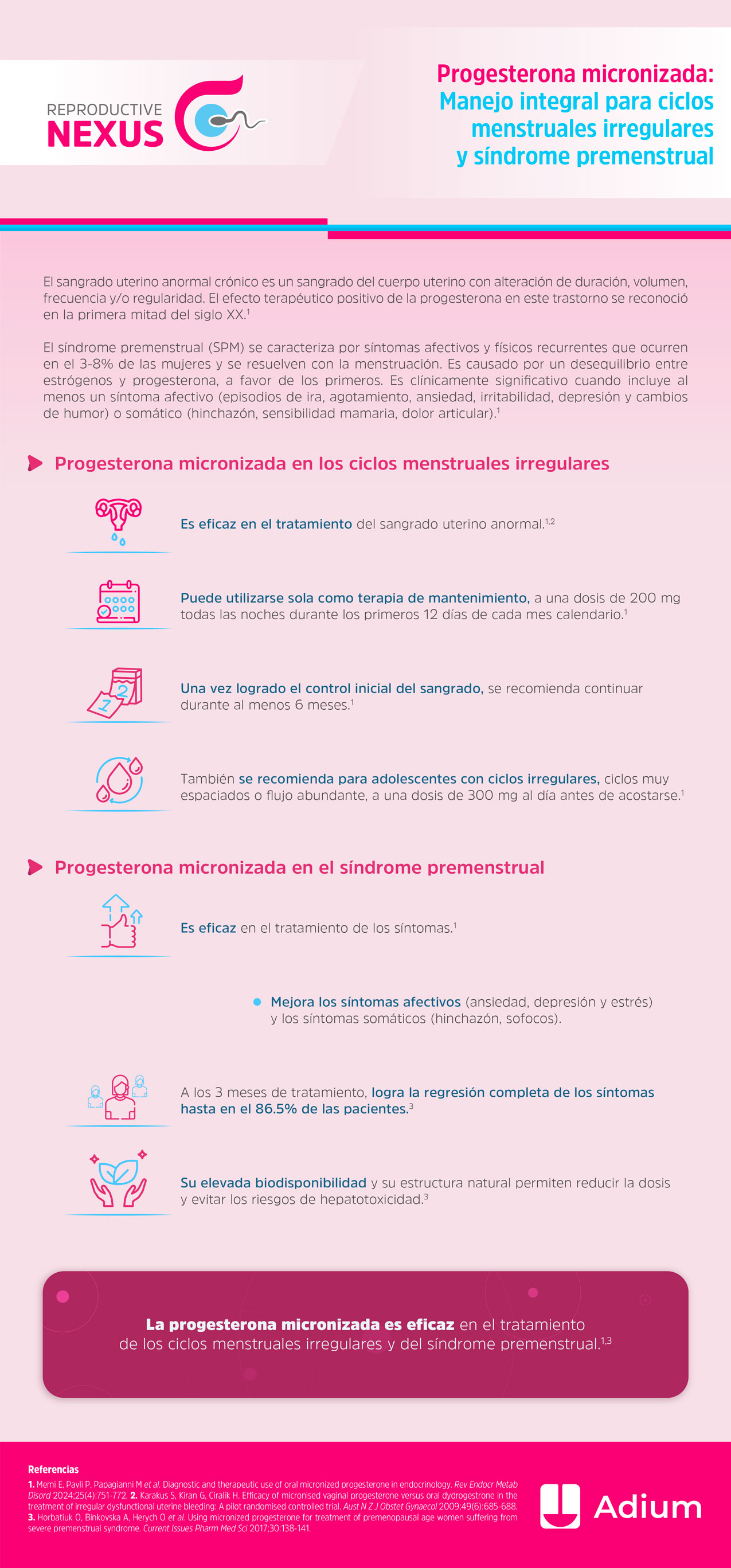 Progesterona micronizada. Manejo integral para ciclos menstruales irregulares y síndrome premenstrual